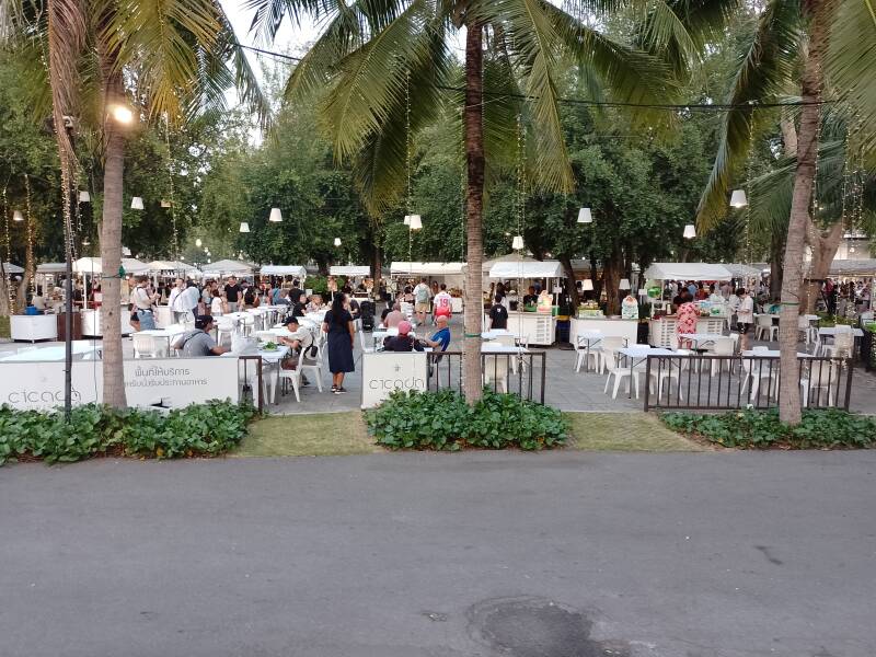 We travelled down to Hua Hin by bus from Bangkok Airport and have been here a couple of days to catch up on laundry but more importantly to buy a suit for Paul which he'll need for our cruise next month, but because of baggage restrictions on the Maldives seaplane he was unable to bring from home. Although Hua Hin doesn't have much going for it (and we both agreed it is a bit of a sleazy beach town), there are two big shopping malls and Paul is now in possession of a black suit (the sales assistant even altered the trousers for length while we continued shopping). We did visit the evening market last night and ate one of the only veggie options we could find- tofu and vegetable fried rice with pineapple.