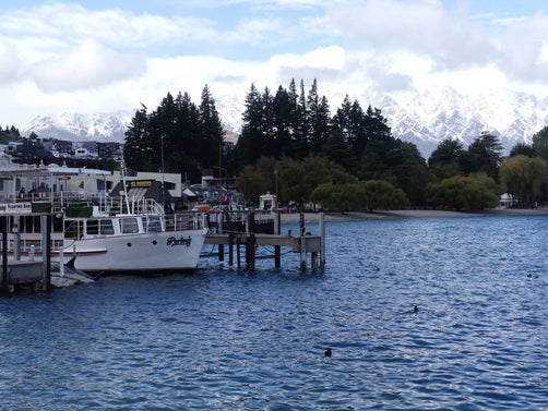 We arrived into Queenstown from Knobs Flat on Monday in the pouring rain. We stayed in a small townhouse overlooking Lake Wakatipu with stunning views although they were hidden from us that day. However, once the weather changed, we were able to appreciate the lake and the mountains beyond. The last few days in Fiordland felt definitely autumnal with chilly mornings and evenings; Tuesday in Queenstown we had a blast of winter with 9 degree temperature plus a biting icy wind, feeling much colder. Fortunately on Wednesday when we hiked up Queenstown Hiill the temperature increased to a balmy 15 degrees and the sun came out. So the views from the summit were magnificent (that's where the photo of us is taken). Queenstown is one of the major towns in the South Island and much busier than we'd been used to. When we left there on Thursday morning, we were stuck in our first traffic jam in New Zealand. But the drive from there to our final destination of Oamaru was beautiful as we travelled through the mountains from the west coast to the east coast. Parts of it reminded us of the scenery of the Yorkshire Dales, parts of it like the Lake District, until you looked further into the distance and saw the snow covered peaks.
