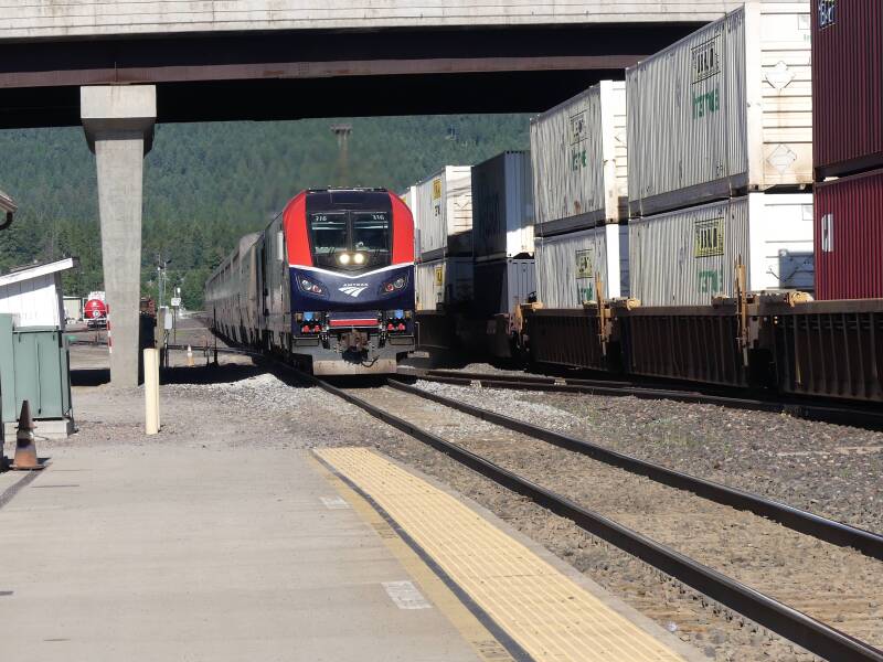 After dropping off our rental car at Glacier Airport, we got a taxi to Whitefish Amtrak Station, ready for our 7.30 am train, only to be told it was running two hours late. Whitefish wasn't exactly a bustling town but rather a one street town that could be explored in less than half hour. Fortunately there was a bakery open and we were able to get a coffee and pastry to keep us going. Whilst waiting on the platform a couple of deer wandered across (which is the photo below).