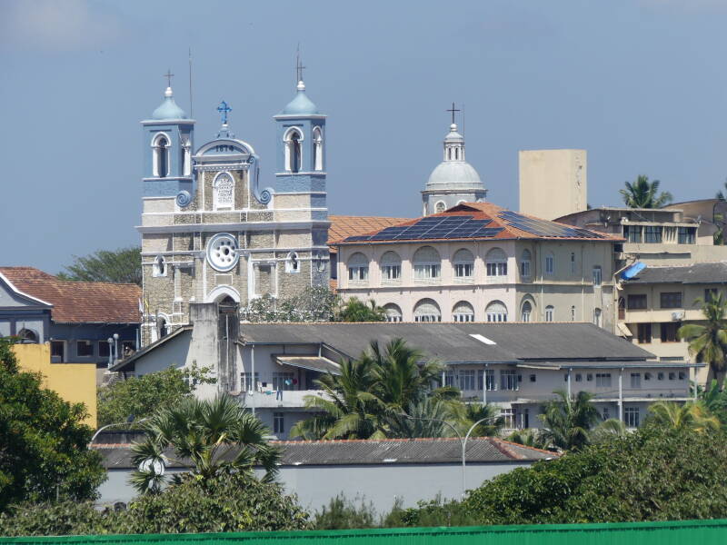 We then moved further around the coast and spent a couple of days ar Galle Fort, a promontory surrounded by ramparts that you can walk around with the middle of the promontory being filled with cobbled streets. On our first walk around the ramparts we were sidetracked by views down over the cricket ground where there was a test match in progress between Sri Lanka and Australia, so we sat alongside the locals cheering on Sri Lanka but unfortunately to no avail. But good to see.