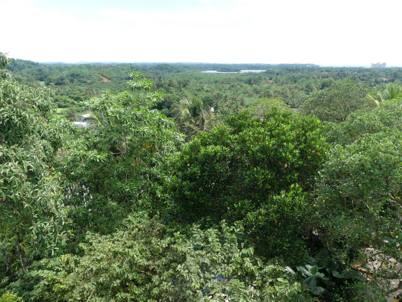 Since our last post, we have travelled further round the south coast, first stopping at Mirissa, a beach town, We stayed at a hotel 10 minutes walk from the town and beach and were taken aback when we arrived to see that reception was up 2 steep staircases although we could see a "cable car" at the side. Our luggage and us were loaded into the car which made a very slow ascent to reception. However each time we went out and returned to the hotel we took the steps, pausing for breath along the way. The good news about being so high were the views from both the room, the restaurant and the rooftop pool, Although the monkeys found it easy to swing from the trees to the balconies and were adept at trying the door handle to gain entry.
