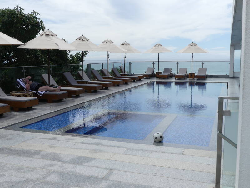 Your hotel room looks lovely and bright. I’m impressed that you used the steps after your initial ride in the cable car. Did you count the number of steps? The swimming pool looks lovely too!