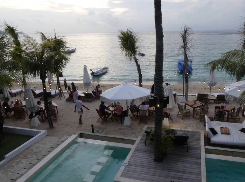 On 24th February we moved down from our villa to Ohanas Beach Club which was a big change from the tranquility of the hills to the comparatively busy village by the sea. Ohanas was weird in that it was the biggest collection of western tourists we'd seen since the Maldives. It's a surprise that this small island seems to be attracting mainstream tourism and families with young children, given that the main draw in these parts is surfing. The weather wasn't great for these last few days with some tremendous thunderstorms (as you can see from the photos before and after the storm). On the Sunday evening, there was live music at Ohanas which was surprisingly good. Many of the bars and restaurants, including Ohanas, support a local charity, Paws of Lembongan, which has a sterilisation and vaccination programme looking after the street dogs and cats which sounds very similar to Rescue Paws in Thailand. Also pleased to see that some of the eateries are looking to become plastic-free and reducing their carbon footprint, whilst providing delicious vegetarian food. During our stay in Indonesia we have been delighted that many dishes substitute chicken/meat with tempeh and tofu. On 27th February we were picked up by Rocky's Fast Cruises for the 45 minute crossing back to Bali and onwards to the airport for our flight to Singapore.