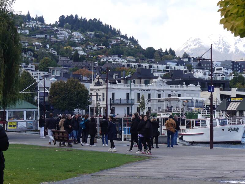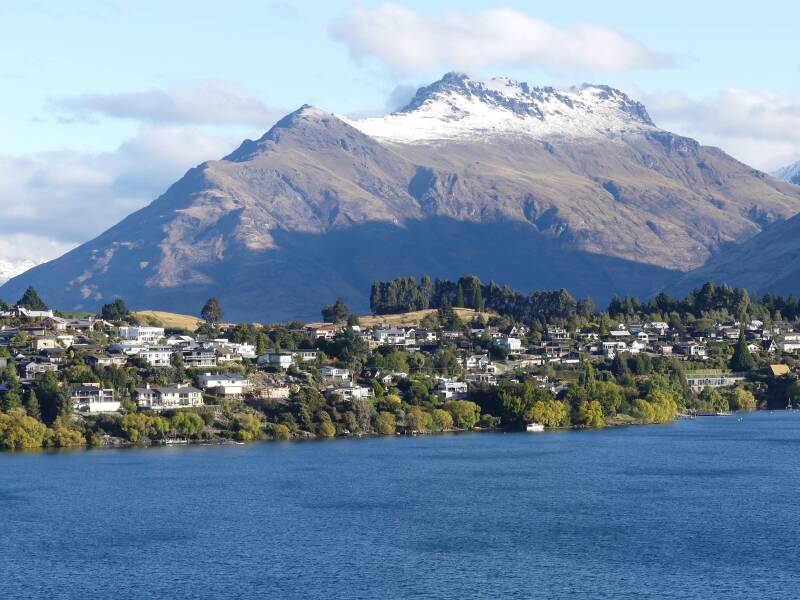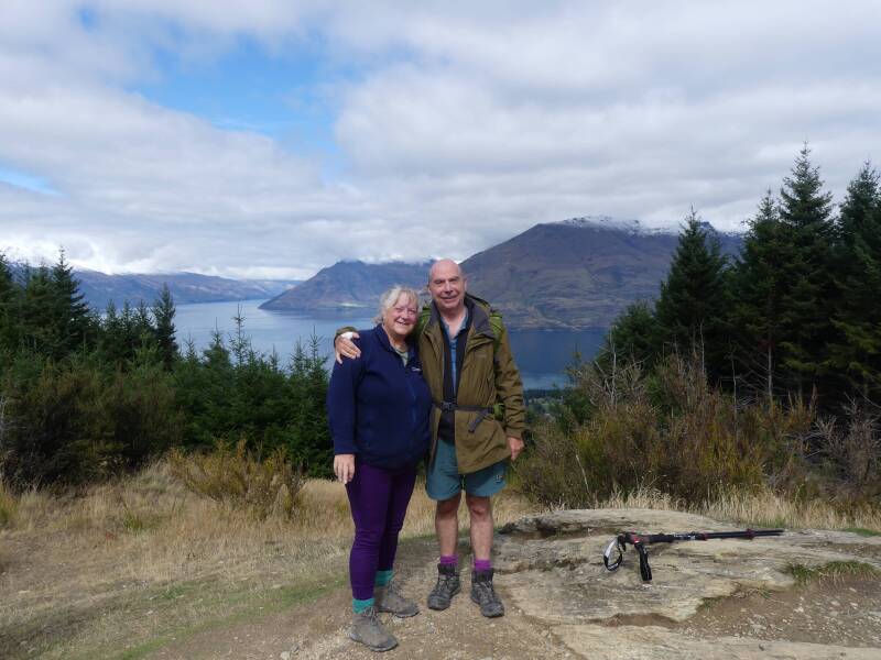 We arrived into Queenstown from Knobs Flat on Monday in the pouring rain. We stayed in a small townhouse overlooking Lake Wakatipu with stunning views although they were hidden from us that day. However, once the weather changed, we were able to appreciate the lake and the mountains beyond. The last few days in Fiordland felt definitely autumnal with chilly mornings and evenings; Tuesday in Queenstown we had a blast of winter with 9 degree temperature plus a biting icy wind, feeling much colder. Fortunately on Wednesday when we hiked up Queenstown Hiill the temperature increased to a balmy 15 degrees and the sun came out. So the views from the summit were magnificent (that's where the photo of us is taken). Queenstown is one of the major towns in the South Island and much busier than we'd been used to. When we left there on Thursday morning, we were stuck in our first traffic jam in New Zealand. But the drive from there to our final destination of Oamaru was beautiful as we travelled through the mountains from the west coast to the east coast. Parts of it reminded us of the scenery of the Yorkshire Dales, parts of it like the Lake District, until you looked further into the distance and saw the snow covered peaks.