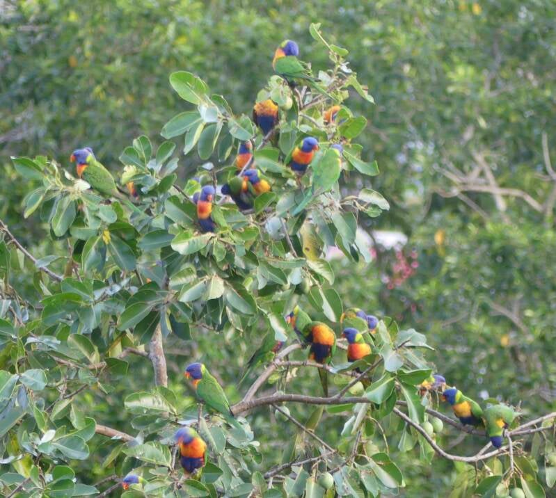 We had two nights in a hotel in the city centre. In the trees outside our room Rainbow Lorikeets started to descend (the birds in the photo). Large flocks continued to arrive until all the trees were full. When we left the hotel for our evening meal, their noise was deafening.