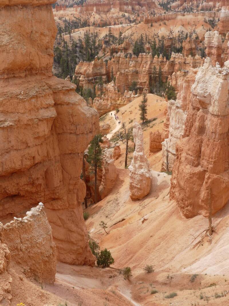 So this morning we set off down the Navajo Trail which was steep switchbacks all the way to the bottom, and then we crossed the canyon floor for about a mile before climbing up to Sunrise Point, with many breathers along the way. It was absolutely stunning and Paul took a couple of hundred photos of the Hoodoos (tall red rock formations eroded by rain, wind and ice). One of the formations has been named Queen Victoria but you need to squint at the right angle to see any resemblance.
