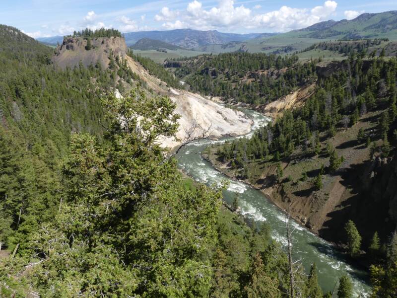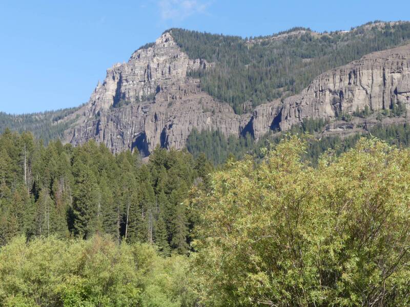 Each day we drove through the Lamar Valley which is home to huge herds of bison and many calves were evident at this time of year. We would turn around soon after a place called Soda Butte when on most occasions we saw a black bear, who we named the Soda Butte Bear. He was generally close to the road munching his way through the grass and flowers in the area.